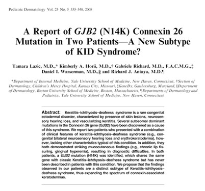 A Report of GJB2 (N14K) Connexin 26 Mutation in Two Patients - A New Subtype of KID Syndrome?