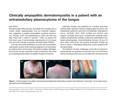 Clinically amyopathic dermatomyositis in a patient with an extramedullary plasmacytoma of the tongue