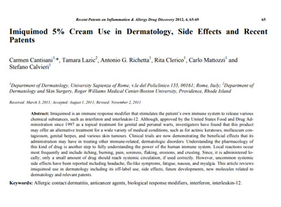Imiquimod 5% Cream Use in Dermatology, Side Effects and Recent Patents
